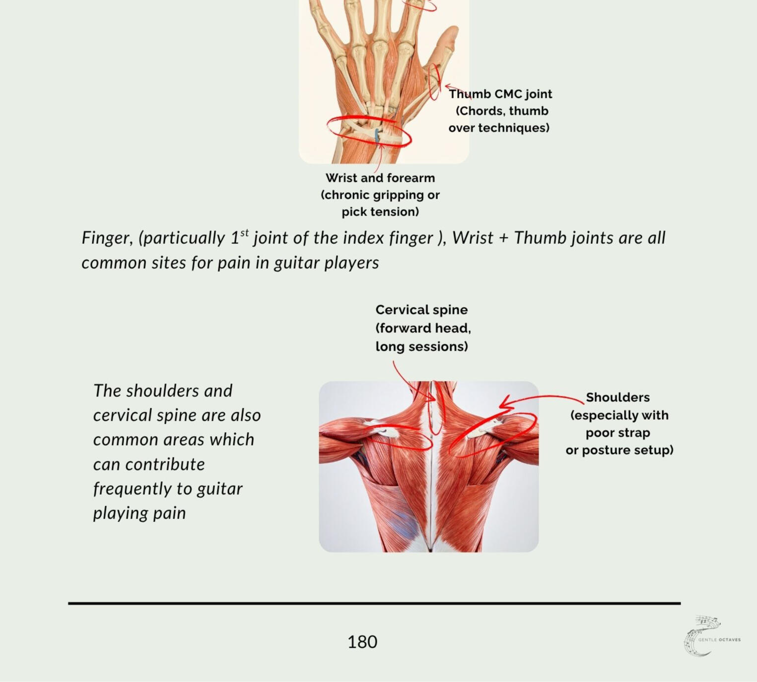 The author is a Manual Osteopath, personal trainer, and long-time guitarist who specializes in pain, posture, and movement for musicians.